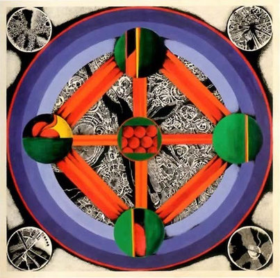 「天球図1」 77cm×77cm 紙、水彩、コンテ
